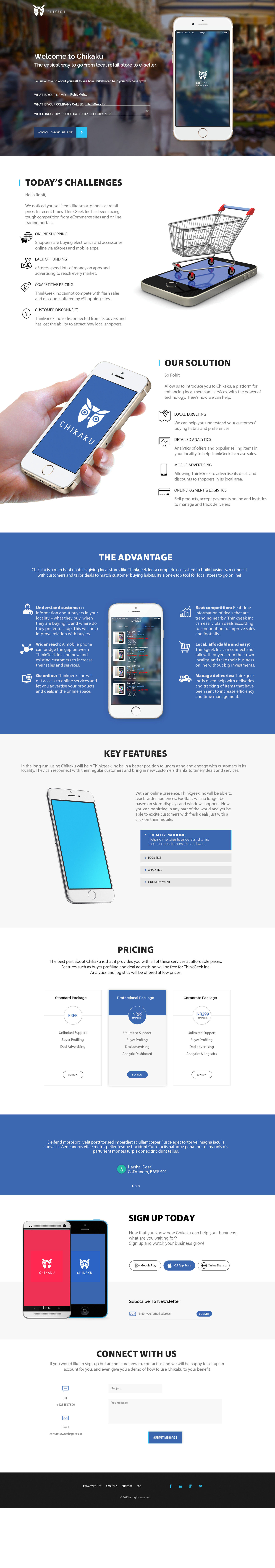At the end the user can either sign up on the site, download the app or call Chikakuworld for a live demo of the app. The website was made responsive across all devices so users or staff giving the live demos can use it to explain the features with ease.